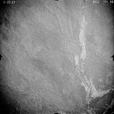 This series of aerial photographs was commissioned by the Brown Company from Fairchild Aerial Surveys, Inc. The images were captured in a North-South direction at an altitude of 12,415 ft. with a focal length of 8.25 inches, an overlap of 60% and a sidelap of 20%. The scale is 1:18,000. University of California, Santa Barbara scanned 9 inches x 9 inches photographic prints at 600 ppi using a Umax PowerLook 2100XL flatbed scanner.
