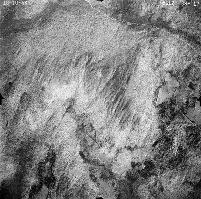 This series of aerial photographs was commissioned by the Brown Company from Fairchild Aerial Surveys, Inc. The images were captured in a North-South direction at an altitude of 12,415 ft. with a focal length of 8.25 inches, an overlap of 60% and a sidelap of 20%. The scale is 1:18,000. University of California, Santa Barbara scanned 9 inches x 9 inches photographic prints at 600 ppi using a Umax PowerLook 2100XL flatbed scanner.