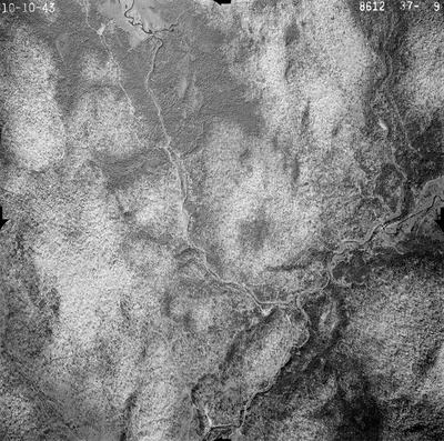 This series of aerial photographs was commissioned by the Brown Company from Fairchild Aerial Surveys, Inc. The images were captured in a North-South direction at an altitude of 12,415 ft. with a focal length of 8.25 inches, an overlap of 60% and a sidelap of 20%. The scale is 1:18,000. University of California, Santa Barbara scanned 9 inches x 9 inches photographic prints at 600 ppi using a Umax PowerLook 2100XL flatbed scanner.