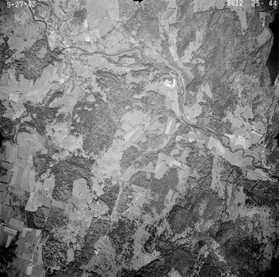 This series of aerial photographs was commissioned by the Brown Company from Fairchild Aerial Surveys, Inc. The images were captured in a North-South direction at an altitude of 12,415 ft. with a focal length of 8.25 inches, an overlap of 60% and a sidelap of 20%. The scale is 1:18,000. University of California, Santa Barbara scanned 9 inches x 9 inches photographic prints at 600 ppi using a Umax PowerLook 2100XL flatbed scanner.