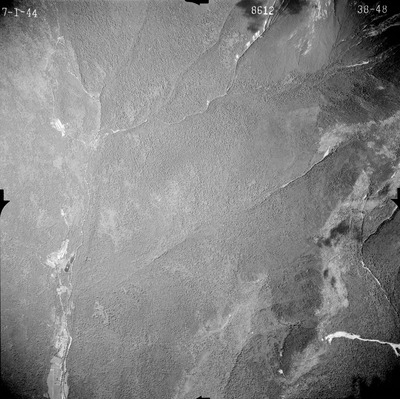 This series of aerial photographs was commissioned by the Brown Company from Fairchild Aerial Surveys, Inc. The images were captured in a North-South direction at an altitude of 12,415 ft. with a focal length of 8.25 inches, an overlap of 60% and a sidelap of 20%. The scale is 1:18,000. University of California, Santa Barbara scanned 9 inches x 9 inches photographic prints at 600 ppi using a Umax PowerLook 2100XL flatbed scanner.