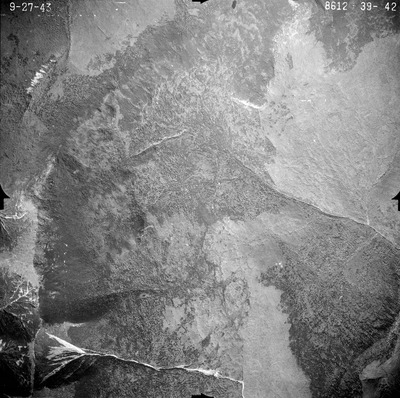 This series of aerial photographs was commissioned by the Brown Company from Fairchild Aerial Surveys, Inc. The images were captured in a North-South direction at an altitude of 12,415 ft. with a focal length of 8.25 inches, an overlap of 60% and a sidelap of 20%. The scale is 1:18,000. University of California, Santa Barbara scanned 9 inches x 9 inches photographic prints at 600 ppi using a Umax PowerLook 2100XL flatbed scanner.
