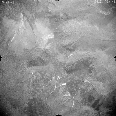 This series of aerial photographs was commissioned by the Brown Company from Fairchild Aerial Surveys, Inc. The images were captured in a North-South direction at an altitude of 12,415 ft. with a focal length of 8.25 inches, an overlap of 60% and a sidelap of 20%. The scale is 1:18,000. University of California, Santa Barbara scanned 9 inches x 9 inches photographic prints at 600 ppi using a Umax PowerLook 2100XL flatbed scanner.