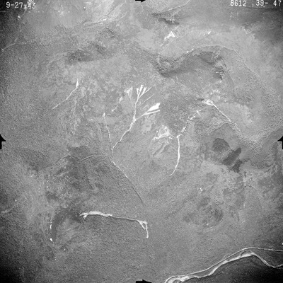 This series of aerial photographs was commissioned by the Brown Company from Fairchild Aerial Surveys, Inc. The images were captured in a North-South direction at an altitude of 12,415 ft. with a focal length of 8.25 inches, an overlap of 60% and a sidelap of 20%. The scale is 1:18,000. University of California, Santa Barbara scanned 9 inches x 9 inches photographic prints at 600 ppi using a Umax PowerLook 2100XL flatbed scanner.