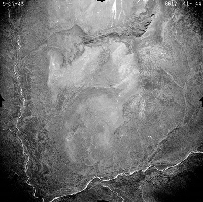 This series of aerial photographs was commissioned by the Brown Company from Fairchild Aerial Surveys, Inc. The images were captured in a North-South direction at an altitude of 12,415 ft. with a focal length of 8.25 inches, an overlap of 60% and a sidelap of 20%. The scale is 1:18,000. University of California, Santa Barbara scanned 9 inches x 9 inches photographic prints at 600 ppi using a Umax PowerLook 2100XL flatbed scanner.
