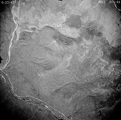 This series of aerial photographs was commissioned by the Brown Company from Fairchild Aerial Surveys, Inc. The images were captured in a North-South direction at an altitude of 12,415 ft. with a focal length of 8.25 inches, an overlap of 60% and a sidelap of 20%. The scale is 1:18,000. University of California, Santa Barbara scanned 9 inches x 9 inches photographic prints at 600 ppi using a Umax PowerLook 2100XL flatbed scanner.