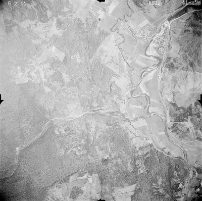 This series of aerial photographs was commissioned by the Brown Company from Fairchild Aerial Surveys, Inc. The images were captured in a North-South direction at an altitude of 12,415 ft. with a focal length of 8.25 inches, an overlap of 60% and a sidelap of 20%. The scale is 1:18,000. University of California, Santa Barbara scanned 9 inches x 9 inches photographic prints at 600 ppi using a Umax PowerLook 2100XL flatbed scanner.