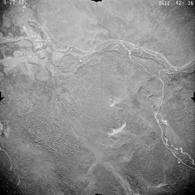 This series of aerial photographs was commissioned by the Brown Company from Fairchild Aerial Surveys, Inc. The images were captured in a North-South direction at an altitude of 12,415 ft. with a focal length of 8.25 inches, an overlap of 60% and a sidelap of 20%. The scale is 1:18,000. University of California, Santa Barbara scanned 9 inches x 9 inches photographic prints at 600 ppi using a Umax PowerLook 2100XL flatbed scanner.