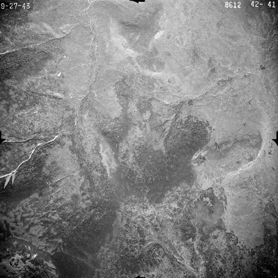This series of aerial photographs was commissioned by the Brown Company from Fairchild Aerial Surveys, Inc. The images were captured in a North-South direction at an altitude of 12,415 ft. with a focal length of 8.25 inches, an overlap of 60% and a sidelap of 20%. The scale is 1:18,000. University of California, Santa Barbara scanned 9 inches x 9 inches photographic prints at 600 ppi using a Umax PowerLook 2100XL flatbed scanner.