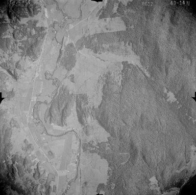 This series of aerial photographs was commissioned by the Brown Company from Fairchild Aerial Surveys, Inc. The images were captured in a North-South direction at an altitude of 12,415 ft. with a focal length of 8.25 inches, an overlap of 60% and a sidelap of 20%. The scale is 1:18,000. University of California, Santa Barbara scanned 9 inches x 9 inches photographic prints at 600 ppi using a Umax PowerLook 2100XL flatbed scanner.