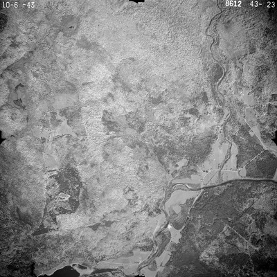 This series of aerial photographs was commissioned by the Brown Company from Fairchild Aerial Surveys, Inc. The images were captured in a North-South direction at an altitude of 12,415 ft. with a focal length of 8.25 inches, an overlap of 60% and a sidelap of 20%. The scale is 1:18,000. University of California, Santa Barbara scanned 9 inches x 9 inches photographic prints at 600 ppi using a Umax PowerLook 2100XL flatbed scanner.