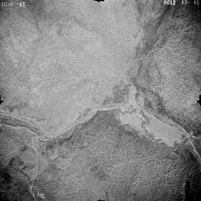 This series of aerial photographs was commissioned by the Brown Company from Fairchild Aerial Surveys, Inc. The images were captured in a North-South direction at an altitude of 12,415 ft. with a focal length of 8.25 inches, an overlap of 60% and a sidelap of 20%. The scale is 1:18,000. University of California, Santa Barbara scanned 9 inches x 9 inches photographic prints at 600 ppi using a Umax PowerLook 2100XL flatbed scanner.