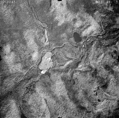 This series of aerial photographs was commissioned by the Brown Company from Fairchild Aerial Surveys, Inc. The images were captured in a North-South direction at an altitude of 12,415 ft. with a focal length of 8.25 inches, an overlap of 60% and a sidelap of 20%. The scale is 1:18,000. University of California, Santa Barbara scanned 9 inches x 9 inches photographic prints at 600 ppi using a Umax PowerLook 2100XL flatbed scanner.