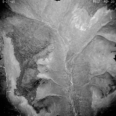 This series of aerial photographs was commissioned by the Brown Company from Fairchild Aerial Surveys, Inc. The images were captured in a North-South direction at an altitude of 12,415 ft. with a focal length of 8.25 inches, an overlap of 60% and a sidelap of 20%. The scale is 1:18,000. University of California, Santa Barbara scanned 9 inches x 9 inches photographic prints at 600 ppi using a Umax PowerLook 2100XL flatbed scanner.