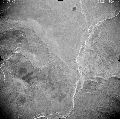 This series of aerial photographs was commissioned by the Brown Company from Fairchild Aerial Surveys, Inc. The images were captured in a North-South direction at an altitude of 12,415 ft. with a focal length of 8.25 inches, an overlap of 60% and a sidelap of 20%. The scale is 1:18,000. University of California, Santa Barbara scanned 9 inches x 9 inches photographic prints at 600 ppi using a Umax PowerLook 2100XL flatbed scanner.
