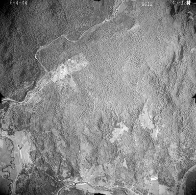 This series of aerial photographs was commissioned by the Brown Company from Fairchild Aerial Surveys, Inc. The images were captured in a North-South direction at an altitude of 12,415 ft. with a focal length of 8.25 inches, an overlap of 60% and a sidelap of 20%. The scale is 1:18,000. University of California, Santa Barbara scanned 9 inches x 9 inches photographic prints at 600 ppi using a Umax PowerLook 2100XL flatbed scanner.