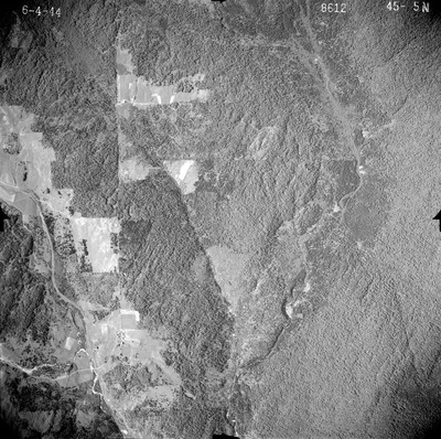 This series of aerial photographs was commissioned by the Brown Company from Fairchild Aerial Surveys, Inc. The images were captured in a North-South direction at an altitude of 12,415 ft. with a focal length of 8.25 inches, an overlap of 60% and a sidelap of 20%. The scale is 1:18,000. University of California, Santa Barbara scanned 9 inches x 9 inches photographic prints at 600 ppi using a Umax PowerLook 2100XL flatbed scanner.
