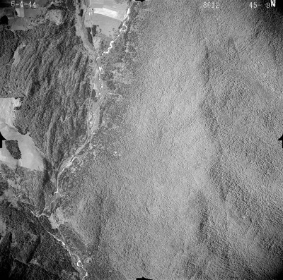 This series of aerial photographs was commissioned by the Brown Company from Fairchild Aerial Surveys, Inc. The images were captured in a North-South direction at an altitude of 12,415 ft. with a focal length of 8.25 inches, an overlap of 60% and a sidelap of 20%. The scale is 1:18,000. University of California, Santa Barbara scanned 9 inches x 9 inches photographic prints at 600 ppi using a Umax PowerLook 2100XL flatbed scanner.
