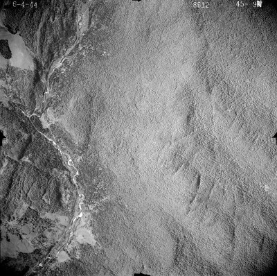 This series of aerial photographs was commissioned by the Brown Company from Fairchild Aerial Surveys, Inc. The images were captured in a North-South direction at an altitude of 12,415 ft. with a focal length of 8.25 inches, an overlap of 60% and a sidelap of 20%. The scale is 1:18,000. University of California, Santa Barbara scanned 9 inches x 9 inches photographic prints at 600 ppi using a Umax PowerLook 2100XL flatbed scanner.