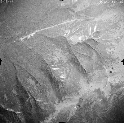 This series of aerial photographs was commissioned by the Brown Company from Fairchild Aerial Surveys, Inc. The images were captured in a North-South direction at an altitude of 12,415 ft. with a focal length of 8.25 inches, an overlap of 60% and a sidelap of 20%. The scale is 1:18,000. University of California, Santa Barbara scanned 9 inches x 9 inches photographic prints at 600 ppi using a Umax PowerLook 2100XL flatbed scanner.