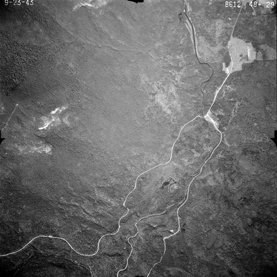 This series of aerial photographs was commissioned by the Brown Company from Fairchild Aerial Surveys, Inc. The images were captured in a North-South direction at an altitude of 12,415 ft. with a focal length of 8.25 inches, an overlap of 60% and a sidelap of 20%. The scale is 1:18,000. University of California, Santa Barbara scanned 9 inches x 9 inches photographic prints at 600 ppi using a Umax PowerLook 2100XL flatbed scanner.