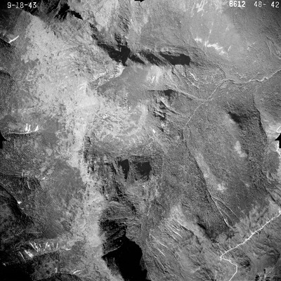 This series of aerial photographs was commissioned by the Brown Company from Fairchild Aerial Surveys, Inc. The images were captured in a North-South direction at an altitude of 12,415 ft. with a focal length of 8.25 inches, an overlap of 60% and a sidelap of 20%. The scale is 1:18,000. University of California, Santa Barbara scanned 9 inches x 9 inches photographic prints at 600 ppi using a Umax PowerLook 2100XL flatbed scanner.