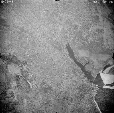 This series of aerial photographs was commissioned by the Brown Company from Fairchild Aerial Surveys, Inc. The images were captured in a North-South direction at an altitude of 12,415 ft. with a focal length of 8.25 inches, an overlap of 60% and a sidelap of 20%. The scale is 1:18,000. University of California, Santa Barbara scanned 9 inches x 9 inches photographic prints at 600 ppi using a Umax PowerLook 2100XL flatbed scanner.