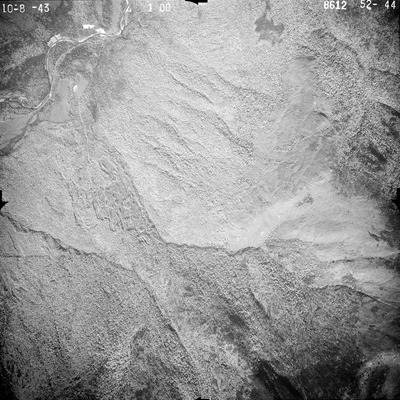 This series of aerial photographs was commissioned by the Brown Company from Fairchild Aerial Surveys, Inc. The images were captured in a North-South direction at an altitude of 12,415 ft. with a focal length of 8.25 inches, an overlap of 60% and a sidelap of 20%. The scale is 1:18,000. University of California, Santa Barbara scanned 9 inches x 9 inches photographic prints at 600 ppi using a Umax PowerLook 2100XL flatbed scanner.