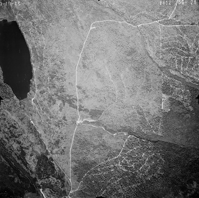 This series of aerial photographs was commissioned by the Brown Company from Fairchild Aerial Surveys, Inc. The images were captured in a North-South direction at an altitude of 12,415 ft. with a focal length of 8.25 inches, an overlap of 60% and a sidelap of 20%. The scale is 1:18,000. University of California, Santa Barbara scanned 9 inches x 9 inches photographic prints at 600 ppi using a Umax PowerLook 2100XL flatbed scanner.