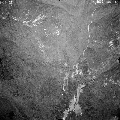 This series of aerial photographs was commissioned by the Brown Company from Fairchild Aerial Surveys, Inc. The images were captured in a North-South direction at an altitude of 12,415 ft. with a focal length of 8.25 inches, an overlap of 60% and a sidelap of 20%. The scale is 1:18,000. University of California, Santa Barbara scanned 9 inches x 9 inches photographic prints at 600 ppi using a Umax PowerLook 2100XL flatbed scanner.