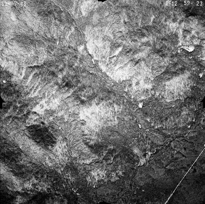 This series of aerial photographs was commissioned by the Brown Company from Fairchild Aerial Surveys, Inc. The images were captured in a North-South direction at an altitude of 12,415 ft. with a focal length of 8.25 inches, an overlap of 60% and a sidelap of 20%. The scale is 1:18,000. University of California, Santa Barbara scanned 9 inches x 9 inches photographic prints at 600 ppi using a Umax PowerLook 2100XL flatbed scanner.