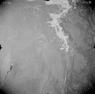 This series of aerial photographs was commissioned by the Brown Company from Fairchild Aerial Surveys, Inc. The images were captured in a North-South direction at an altitude of 12,415 ft. with a focal length of 8.25 inches, an overlap of 60% and a sidelap of 20%. The scale is 1:18,000. University of California, Santa Barbara scanned 9 inches x 9 inches photographic prints at 600 ppi using a Umax PowerLook 2100XL flatbed scanner.