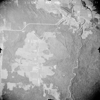 This series of aerial photographs was commissioned by the Brown Company from Fairchild Aerial Surveys, Inc. The images were captured in a North-South direction at an altitude of 12,415 ft. with a focal length of 8.25 inches, an overlap of 60% and a sidelap of 20%. The scale is 1:18,000. University of California, Santa Barbara scanned 9 inches x 9 inches photographic prints at 600 ppi using a Umax PowerLook 2100XL flatbed scanner.
