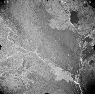 This series of aerial photographs was commissioned by the Brown Company from Fairchild Aerial Surveys, Inc. The images were captured in a North-South direction at an altitude of 12,415 ft. with a focal length of 8.25 inches, an overlap of 60% and a sidelap of 20%. The scale is 1:18,000. University of California, Santa Barbara scanned 9 inches x 9 inches photographic prints at 600 ppi using a Umax PowerLook 2100XL flatbed scanner.