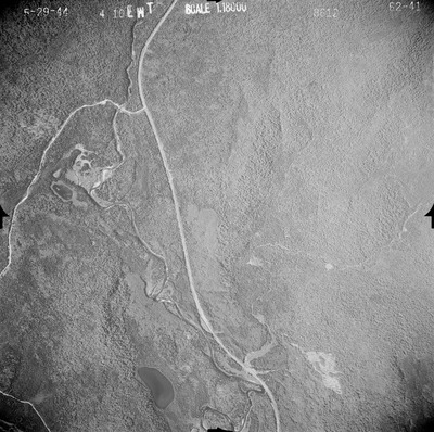 This series of aerial photographs was commissioned by the Brown Company from Fairchild Aerial Surveys, Inc. The images were captured in a North-South direction at an altitude of 12,415 ft. with a focal length of 8.25 inches, an overlap of 60% and a sidelap of 20%. The scale is 1:18,000. University of California, Santa Barbara scanned 9 inches x 9 inches photographic prints at 600 ppi using a Umax PowerLook 2100XL flatbed scanner.