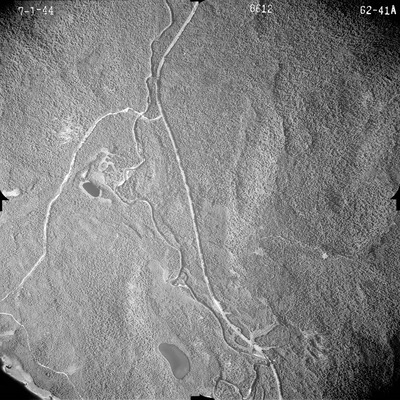 This series of aerial photographs was commissioned by the Brown Company from Fairchild Aerial Surveys, Inc. The images were captured in a North-South direction at an altitude of 12,415 ft. with a focal length of 8.25 inches, an overlap of 60% and a sidelap of 20%. The scale is 1:18,000. University of California, Santa Barbara scanned 9 inches x 9 inches photographic prints at 600 ppi using a Umax PowerLook 2100XL flatbed scanner.