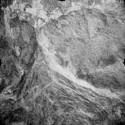 This series of aerial photographs was commissioned by the Brown Company from Fairchild Aerial Surveys, Inc. The images were captured in a North-South direction at an altitude of 12,415 ft. with a focal length of 8.25 inches, an overlap of 60% and a sidelap of 20%. The scale is 1:18,000. University of California, Santa Barbara scanned 9 inches x 9 inches photographic prints at 600 ppi using a Umax PowerLook 2100XL flatbed scanner.