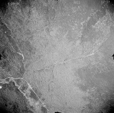 This series of aerial photographs was commissioned by the Brown Company from Fairchild Aerial Surveys, Inc. The images were captured in a North-South direction at an altitude of 12,415 ft. with a focal length of 8.25 inches, an overlap of 60% and a sidelap of 20%. The scale is 1:18,000. University of California, Santa Barbara scanned 9 inches x 9 inches photographic prints at 600 ppi using a Umax PowerLook 2100XL flatbed scanner.