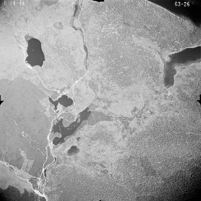 This series of aerial photographs was commissioned by the Brown Company from Fairchild Aerial Surveys, Inc. The images were captured in a North-South direction at an altitude of 12,415 ft. with a focal length of 8.25 inches, an overlap of 60% and a sidelap of 20%. The scale is 1:18,000. University of California, Santa Barbara scanned 9 inches x 9 inches photographic prints at 600 ppi using a Umax PowerLook 2100XL flatbed scanner.