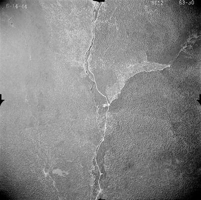 This series of aerial photographs was commissioned by the Brown Company from Fairchild Aerial Surveys, Inc. The images were captured in a North-South direction at an altitude of 12,415 ft. with a focal length of 8.25 inches, an overlap of 60% and a sidelap of 20%. The scale is 1:18,000. University of California, Santa Barbara scanned 9 inches x 9 inches photographic prints at 600 ppi using a Umax PowerLook 2100XL flatbed scanner.
