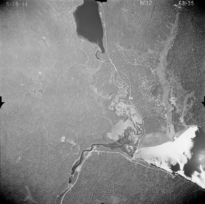 This series of aerial photographs was commissioned by the Brown Company from Fairchild Aerial Surveys, Inc. The images were captured in a North-South direction at an altitude of 12,415 ft. with a focal length of 8.25 inches, an overlap of 60% and a sidelap of 20%. The scale is 1:18,000. University of California, Santa Barbara scanned 9 inches x 9 inches photographic prints at 600 ppi using a Umax PowerLook 2100XL flatbed scanner.