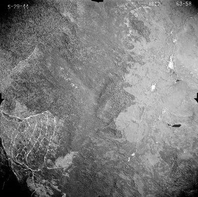 This series of aerial photographs was commissioned by the Brown Company from Fairchild Aerial Surveys, Inc. The images were captured in a North-South direction at an altitude of 12,415 ft. with a focal length of 8.25 inches, an overlap of 60% and a sidelap of 20%. The scale is 1:18,000. University of California, Santa Barbara scanned 9 inches x 9 inches photographic prints at 600 ppi using a Umax PowerLook 2100XL flatbed scanner.