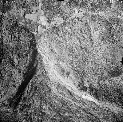 This series of aerial photographs was commissioned by the Brown Company from Fairchild Aerial Surveys, Inc. The images were captured in a North-South direction at an altitude of 12,415 ft. with a focal length of 8.25 inches, an overlap of 60% and a sidelap of 20%. The scale is 1:18,000. University of California, Santa Barbara scanned 9 inches x 9 inches photographic prints at 600 ppi using a Umax PowerLook 2100XL flatbed scanner.