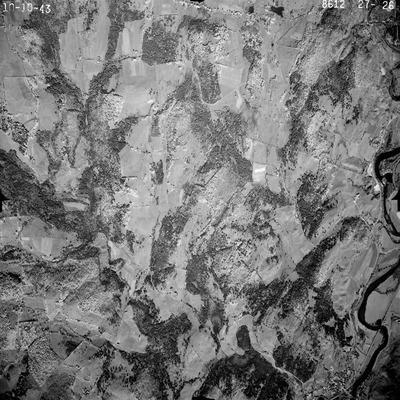 This series of aerial photographs was commissioned by the Brown Company from Fairchild Aerial Surveys, Inc. The images were captured in a North-South direction at an altitude of 12,415 ft. with a focal length of 8.25 inches, an overlap of 60% and a sidelap of 20%. The scale is 1:18,000. University of California, Santa Barbara scanned 9 inches x 9 inches photographic prints at 600 ppi using a Umax PowerLook 2100XL flatbed scanner.