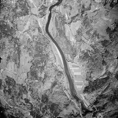 This series of aerial photographs was commissioned by the Brown Company from Fairchild Aerial Surveys, Inc. The images were captured in a North-South direction at an altitude of 12,415 ft. with a focal length of 8.25 inches, an overlap of 60% and a sidelap of 20%. The scale is 1:18,000. University of California, Santa Barbara scanned 9 inches x 9 inches photographic prints at 600 ppi using a Umax PowerLook 2100XL flatbed scanner.