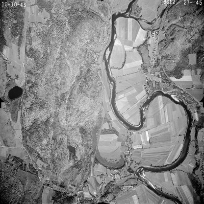 This series of aerial photographs was commissioned by the Brown Company from Fairchild Aerial Surveys, Inc. The images were captured in a North-South direction at an altitude of 12,415 ft. with a focal length of 8.25 inches, an overlap of 60% and a sidelap of 20%. The scale is 1:18,000. University of California, Santa Barbara scanned 9 inches x 9 inches photographic prints at 600 ppi using a Umax PowerLook 2100XL flatbed scanner.
