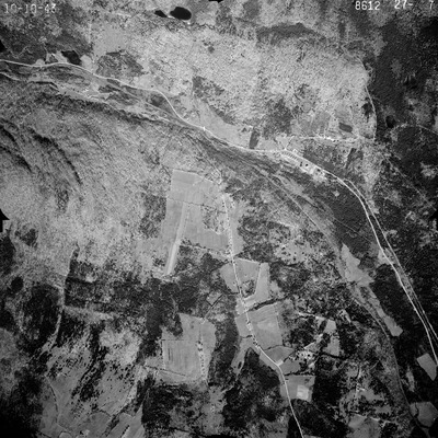 This series of aerial photographs was commissioned by the Brown Company from Fairchild Aerial Surveys, Inc. The images were captured in a North-South direction at an altitude of 12,415 ft. with a focal length of 8.25 inches, an overlap of 60% and a sidelap of 20%. The scale is 1:18,000. University of California, Santa Barbara scanned 9 inches x 9 inches photographic prints at 600 ppi using a Umax PowerLook 2100XL flatbed scanner.