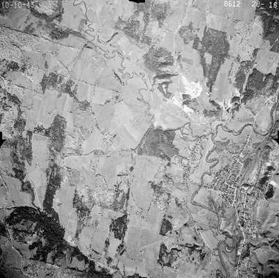This series of aerial photographs was commissioned by the Brown Company from Fairchild Aerial Surveys, Inc. The images were captured in a North-South direction at an altitude of 12,415 ft. with a focal length of 8.25 inches, an overlap of 60% and a sidelap of 20%. The scale is 1:18,000. University of California, Santa Barbara scanned 9 inches x 9 inches photographic prints at 600 ppi using a Umax PowerLook 2100XL flatbed scanner.