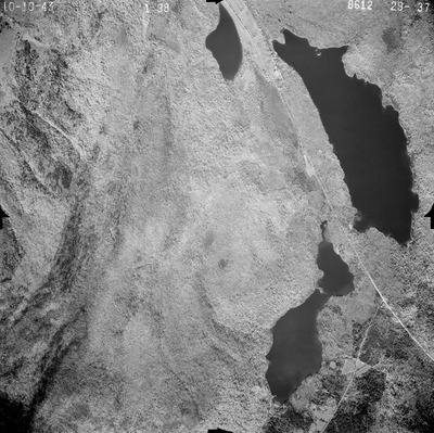 This series of aerial photographs was commissioned by the Brown Company from Fairchild Aerial Surveys, Inc. The images were captured in a North-South direction at an altitude of 12,415 ft. with a focal length of 8.25 inches, an overlap of 60% and a sidelap of 20%. The scale is 1:18,000. University of California, Santa Barbara scanned 9 inches x 9 inches photographic prints at 600 ppi using a Umax PowerLook 2100XL flatbed scanner.