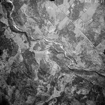 This series of aerial photographs was commissioned by the Brown Company from Fairchild Aerial Surveys, Inc. The images were captured in a North-South direction at an altitude of 12,415 ft. with a focal length of 8.25 inches, an overlap of 60% and a sidelap of 20%. The scale is 1:18,000. University of California, Santa Barbara scanned 9 inches x 9 inches photographic prints at 600 ppi using a Umax PowerLook 2100XL flatbed scanner.